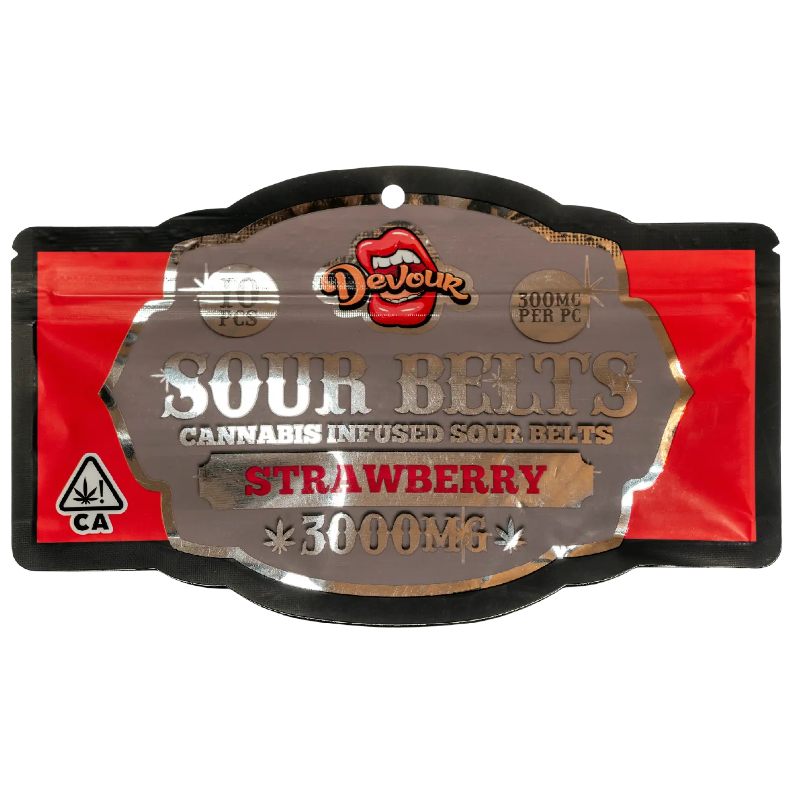 Devour Sour Belts – Strawberry | Cannabis-Infused | 3000mg THC By Devour