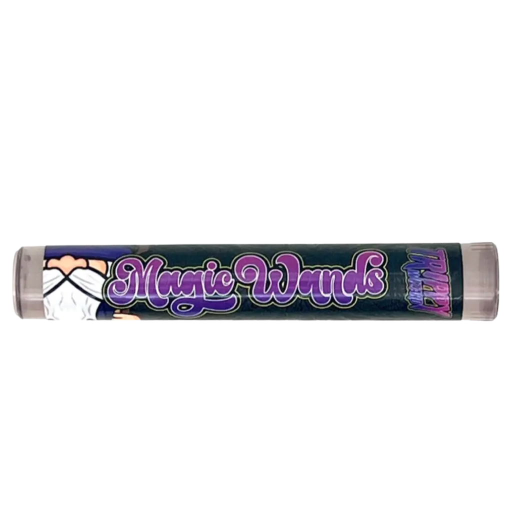 Introducing the Magic Wand Hand-Rolled Pre Roll, a premium cannabis experience. Each pre roll contains 1.5 grams of indoor flower and is coated with 0.25 grams of live resin diamonds. Hand-rolled with care, these saliva-free pre rolls ensure a smooth taste and deliver exceptional flavors and effects. Elevate your smoking experience with Trippy Wizard’s meticulous craftsmanship and high-quality ingredients. Discover the magic of our pre rolls and indulge in blissful relaxation and euphoria. Trippy Wizard | Hybrid · Taste: Gas, Earthy · Feeling: Relaxed, Happy net weight: 1.5 grams concentrate: .25 Live Resin Diamonds