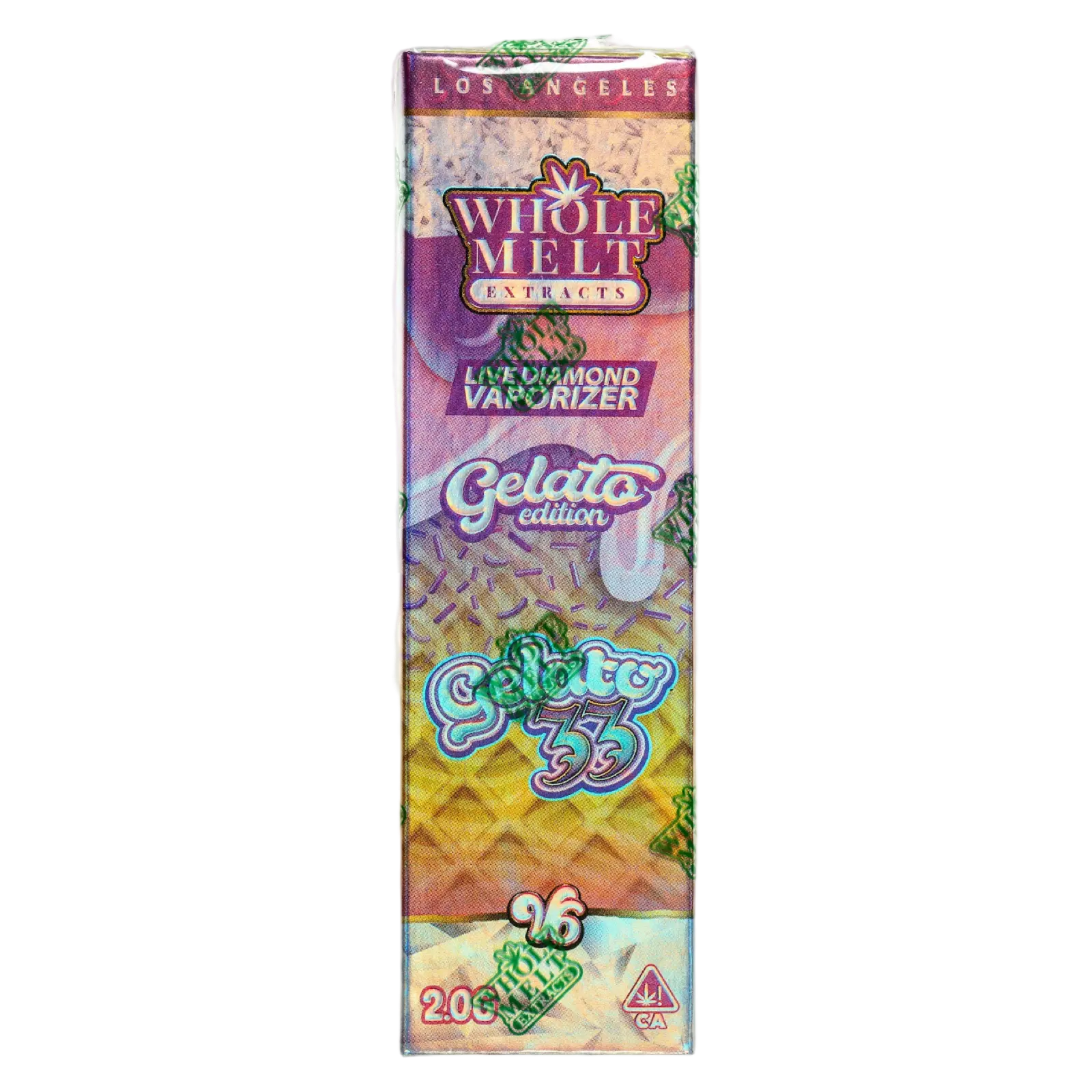 Smooth, balanced, and legendary — Whole Melt Extracts Gelato 33 is a classic in the Gelato family, known for its rich dessert-like profile and consistently mellow high. Expect creamy sweetness with subtle citrus and earthy undertones, perfect for creative flow or post-session relaxation. Crafted with full-spectrum live resin diamonds and precision-engineered V6 hardware, this 2G vape delivers flavorful clouds and elite effects. Product Highlights: • Strain: Gelato 33 • Type: Hybrid • Format: 2G Live Diamond Vape (V6 Hardware) • Flavor Notes: Sweet Cream, Citrus, Light Earthy Gas • Effects: Balanced • Creative • Chill • Origin: Los Angeles, CA • Compliance: California state legal – contains cannabis